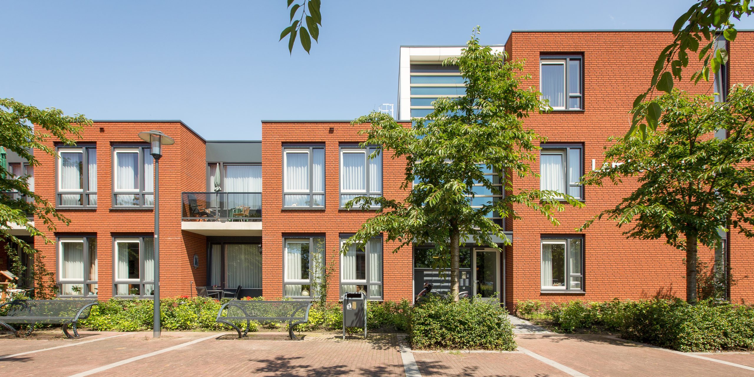 Woningcorporatie Mooiland is de eigenaar van de 16 nultrede appartementen en speelt hiermee in op het nieuwe beleid van de regering om ouderen langer zelfstandig te laten wonen. Het resultaat is een zorgvuldig ontworpen complex met ingetogen architectuur en veel zicht op het prachtige groen in de omgeving.