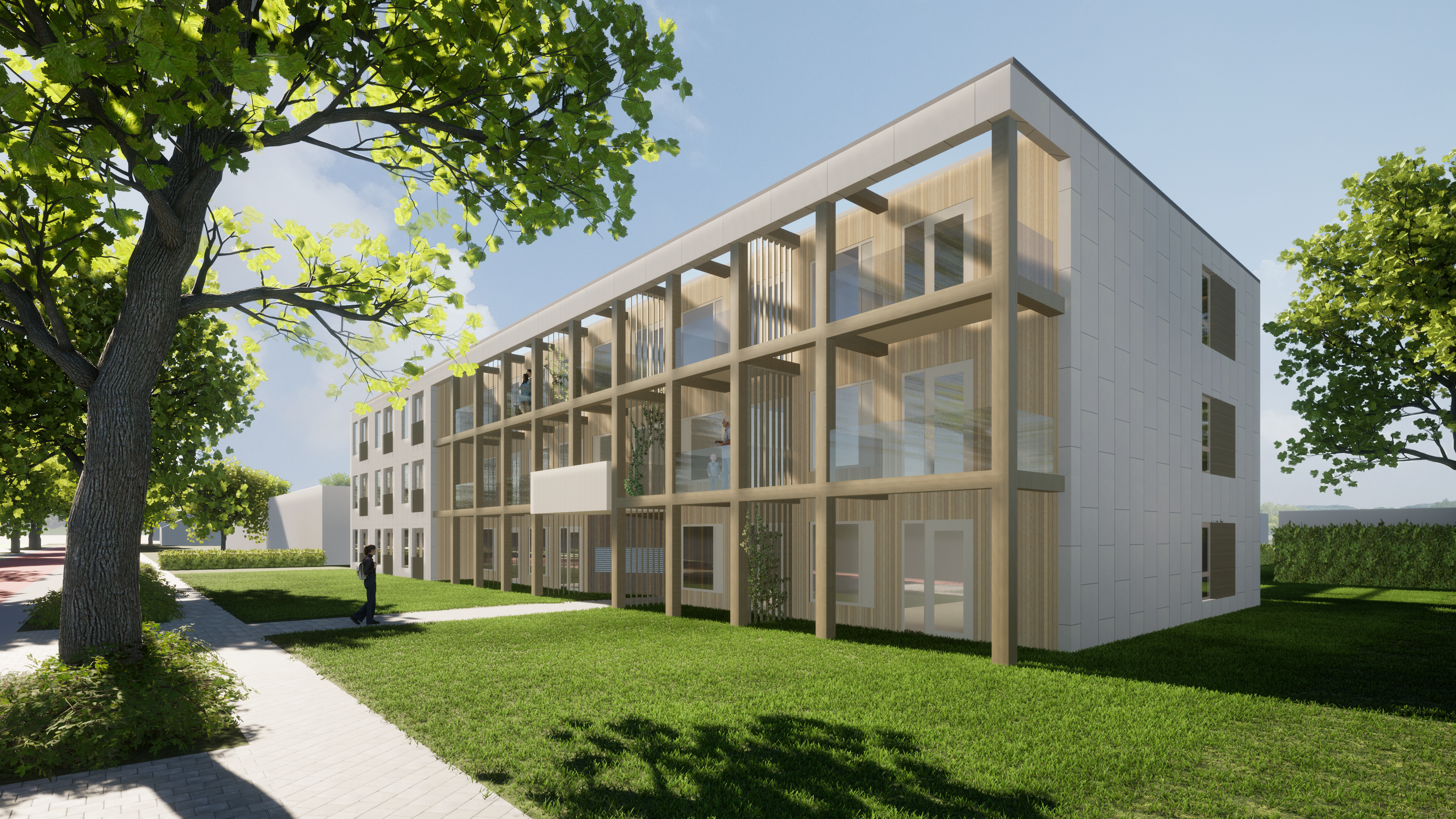 Op een inbreidingslocatie aan de Verdistraat in Oss is de ambitie uitgesproken voor een houten woongebouw. Waar nu een woonzorgcomplex van de GGZ gevestigd is, komt deze functie straks terug in een nieuw jasje aangevuld met een 20-tal huurappartementen. Zo wordt op een duurzame wijze antwoord gegeven op de woningbouwopgave binnen de gemeente Oss.