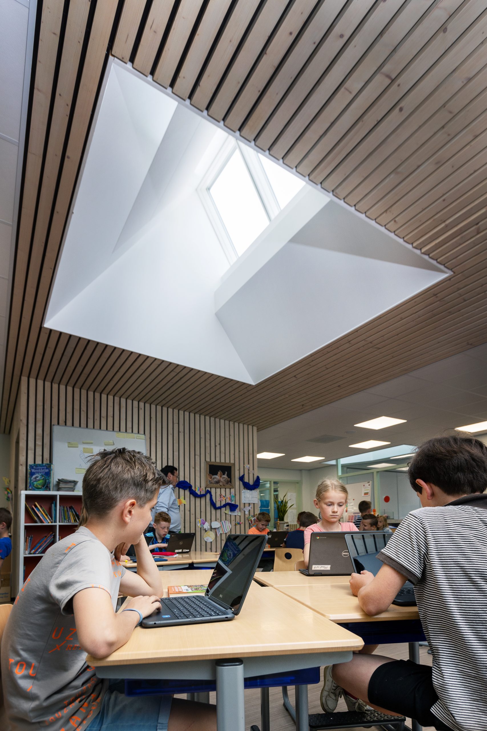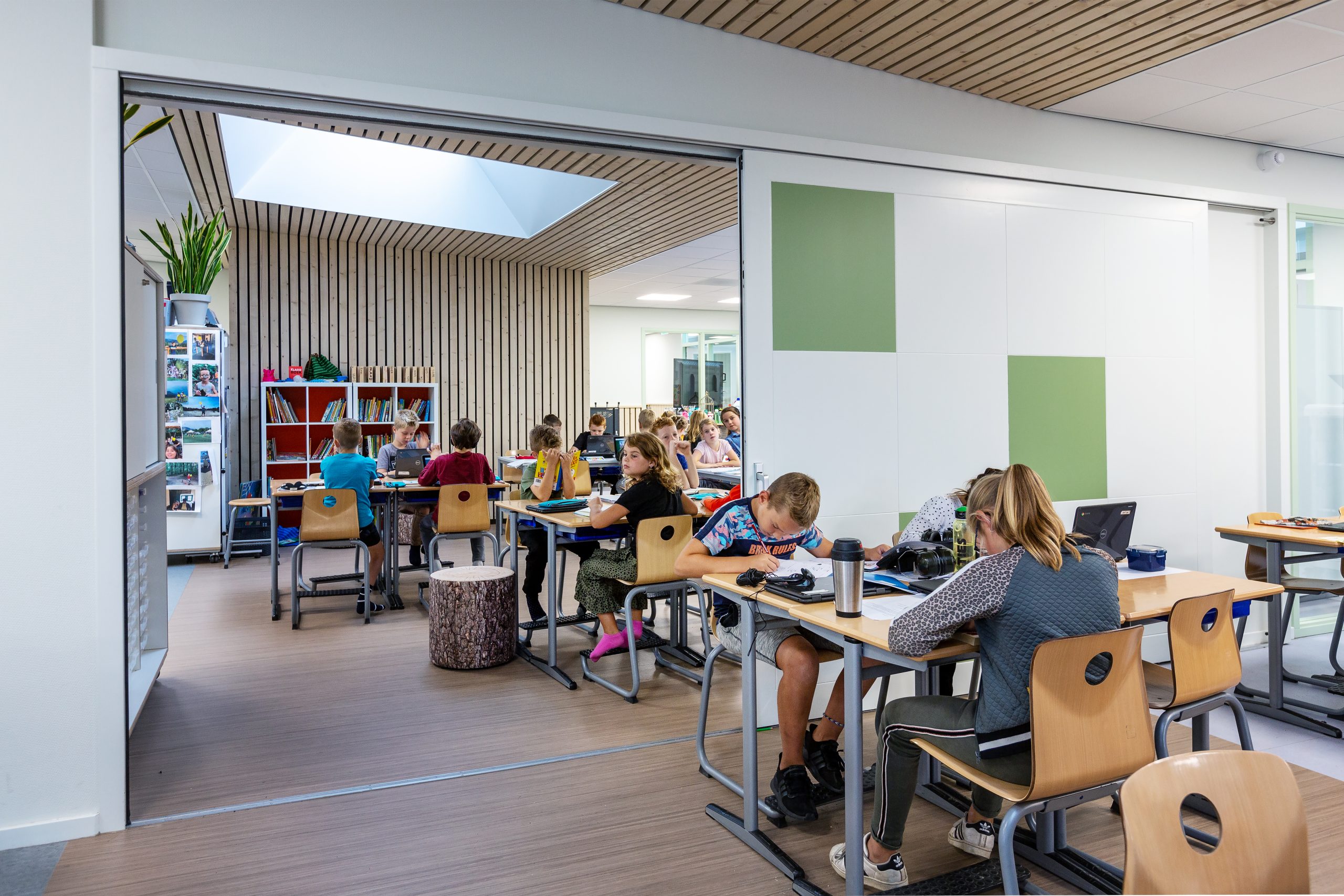 Ieder kind kent zijn eigen ontwikkeling. Deze basisschool kan dankzij de open leeromgeving met een totaal andere organisatie aan de slag. Er wordt klasdoorbroken of groepsoverstijgend gewerkt waardoor leerlingen vanuit hun basisgroep kunnen kiezen voor een activiteit in een andere klas of een andere plek, zelfs buiten. Zo komen leerlingen van verschillende klassen bij elkaar en leren zij van elkaar.