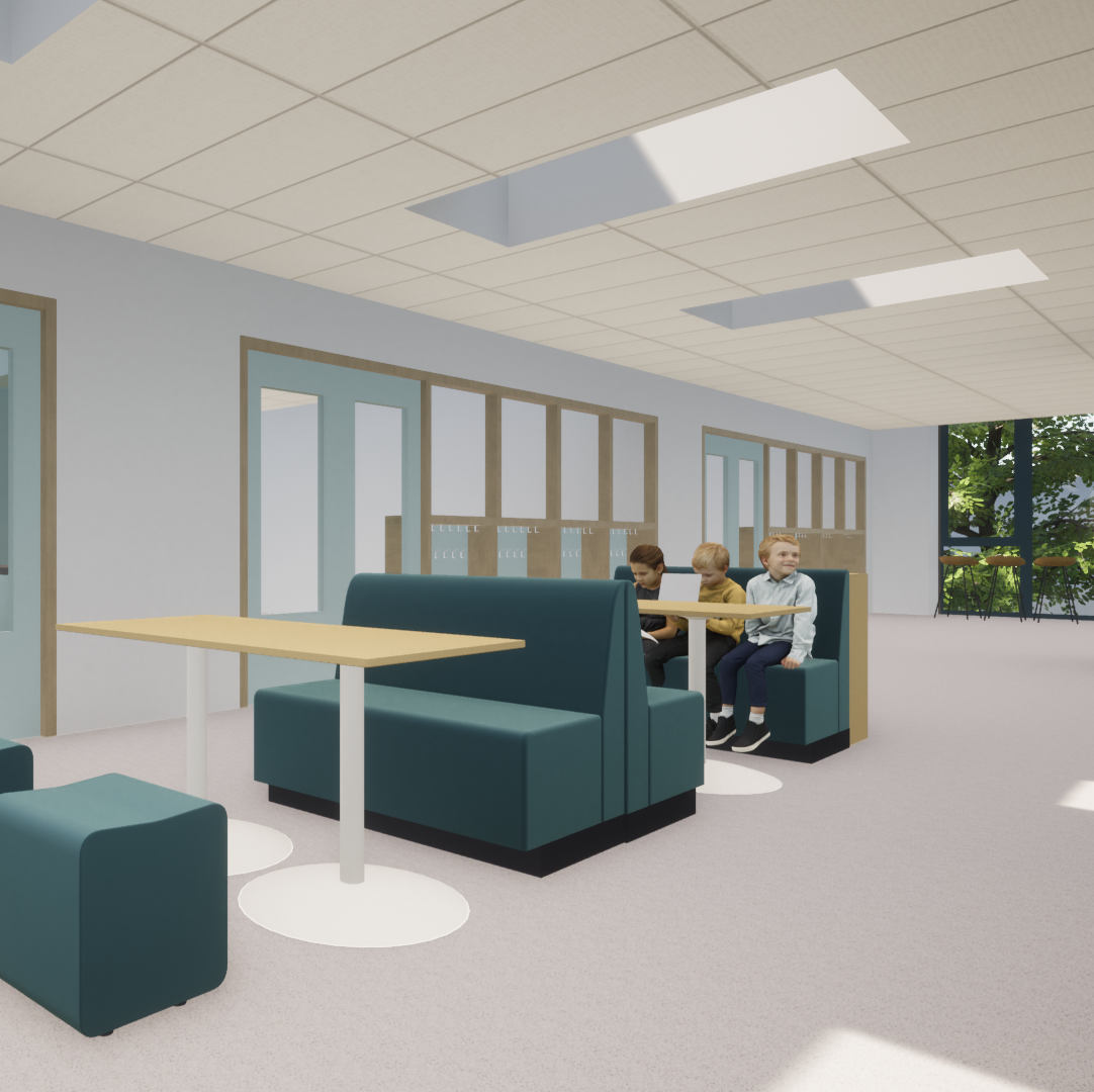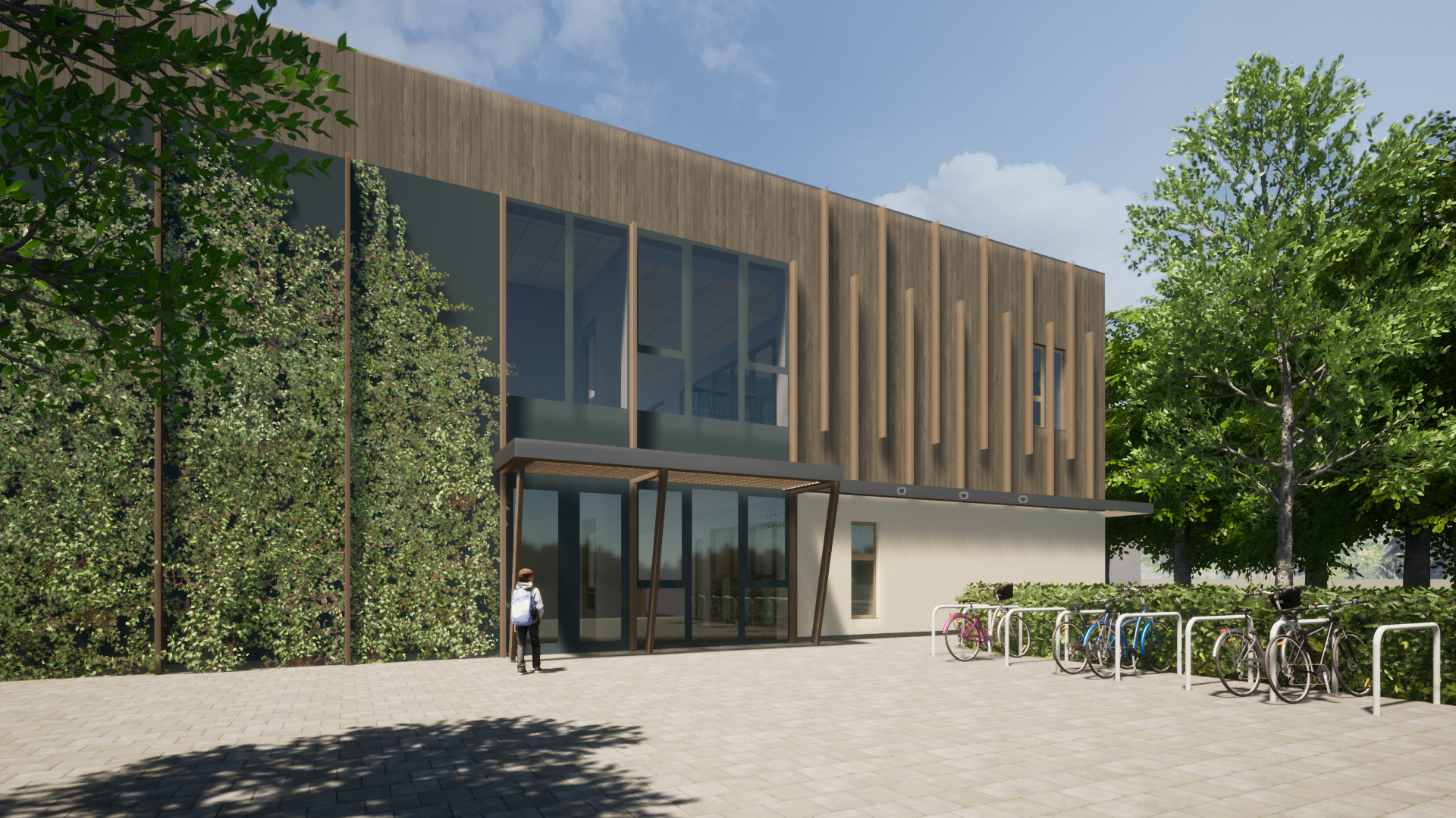 Voor zowel het exterieur als het interieur zijn natuurlijke, biobased materialen gebruikt. Hierdoor wordt de ecologische voetafdruk verkleind en ontstaat er een gezond binnenklimaat in de onderwijsruimten. Door slimme ontwerptoepassingen, bevestigingsdetails en een verantwoorde materiaalkeuze is het gebouw straks toekomstbestendig en aanpasbaar. De school vormt hiermee een inspiratie voor toekomstige generaties maar bovenal een gezonde en uitdagende leeromgeving voor al zijn gebruikers.