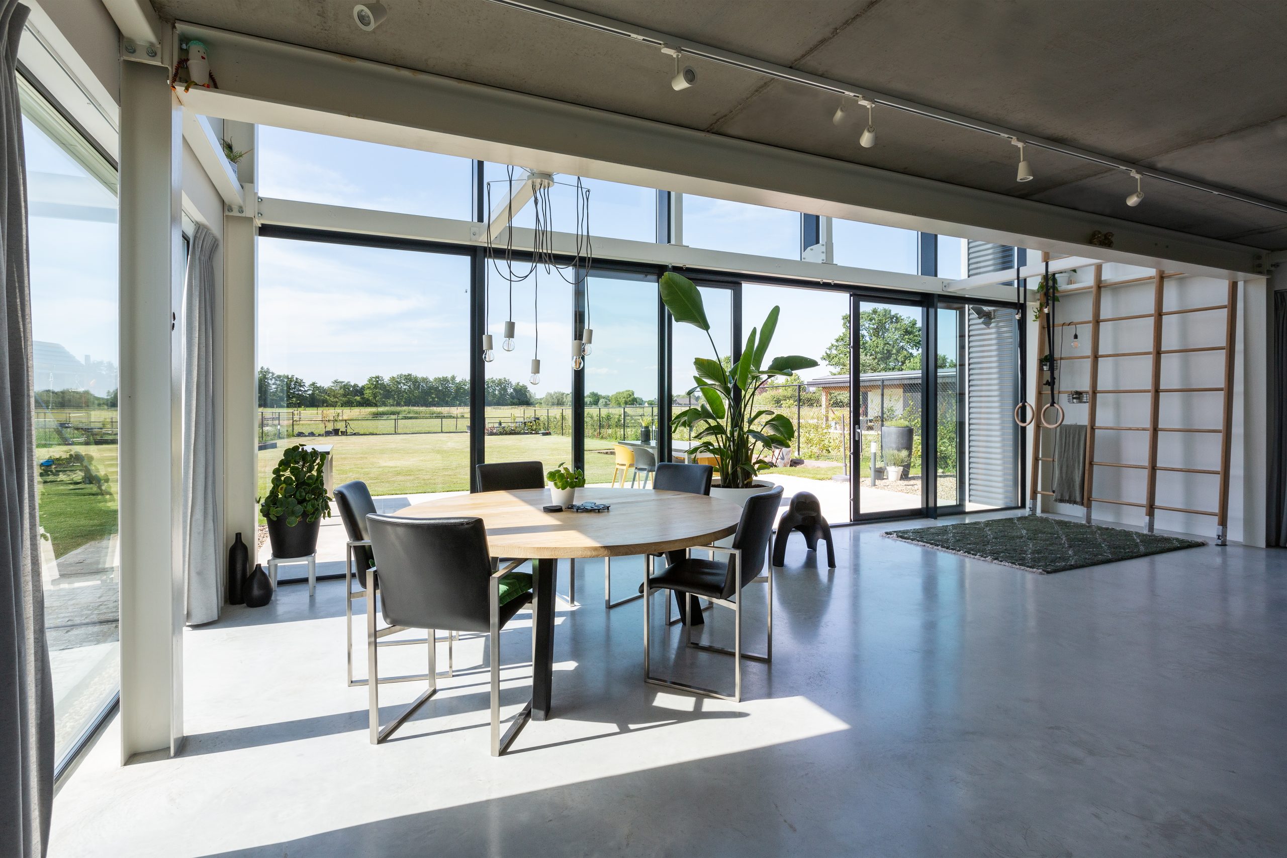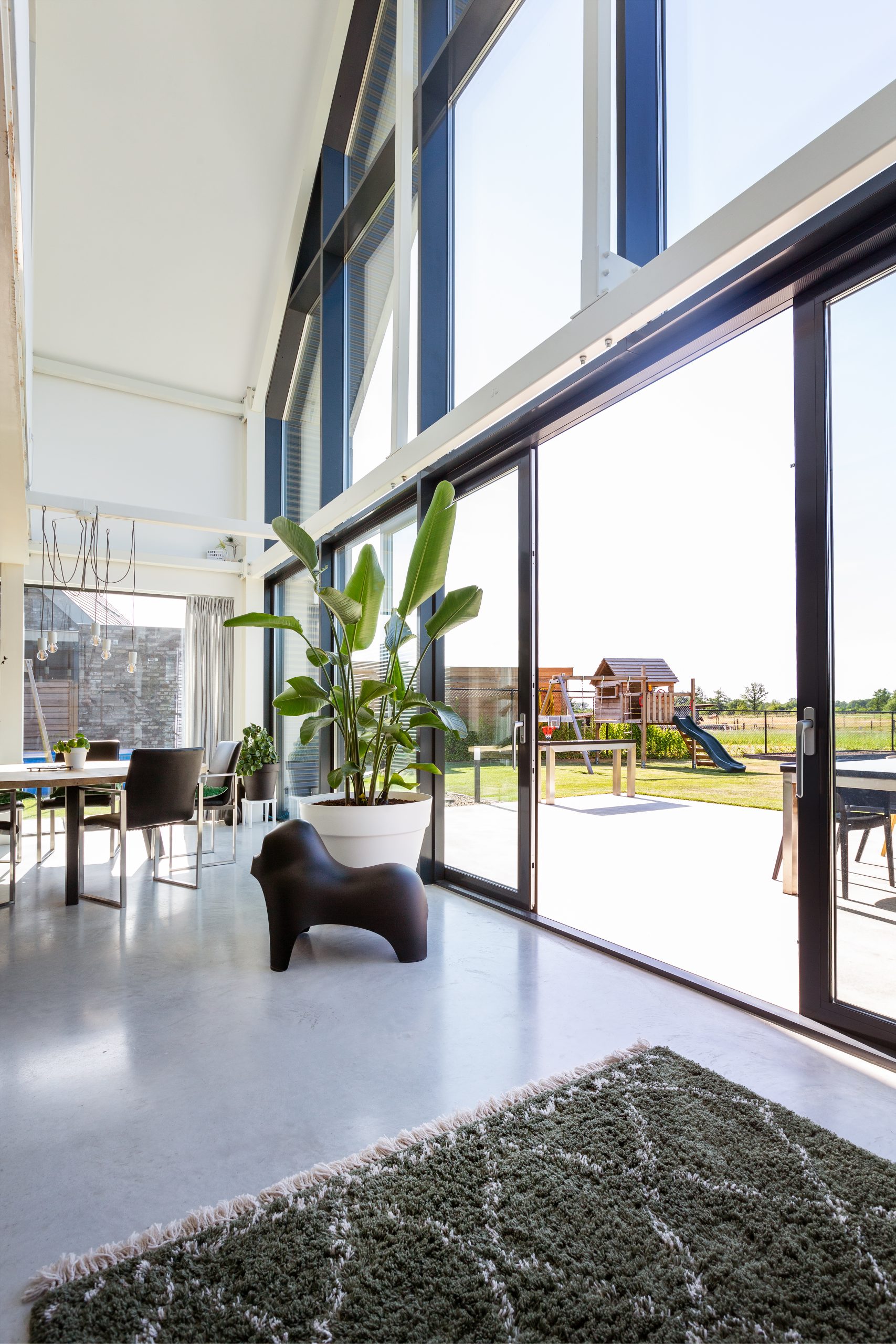Via de glazen pui, welke zich uitstrekt over twee verdiepingen, komt daglicht in overvloed binnen. De vide maakt deze woning tot een unieke ruimtelijke ervaring. Met een in het zicht gelaten stalen constructie is dit met recht een industrieel woonhuis te noemen. Een strakke en eerlijke detaillering zorgt voor de uitgesproken uitstraling van het interieur.