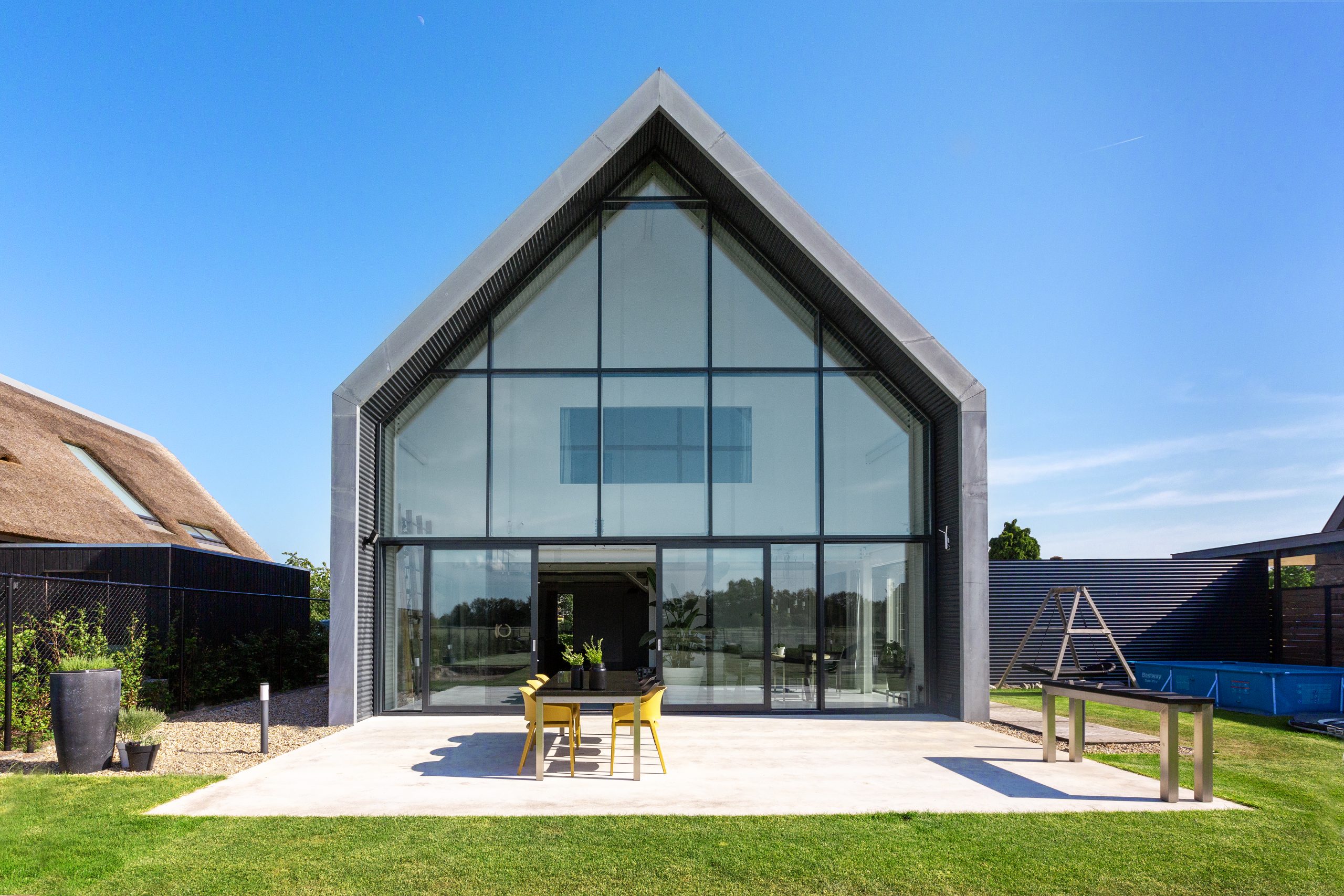 In het uitgestrekte Brabantse landschap staat deze stoere, in metaal gehulde woning. Het gedurfde ontwerp komt volledig tot zijn recht in de groene setting.