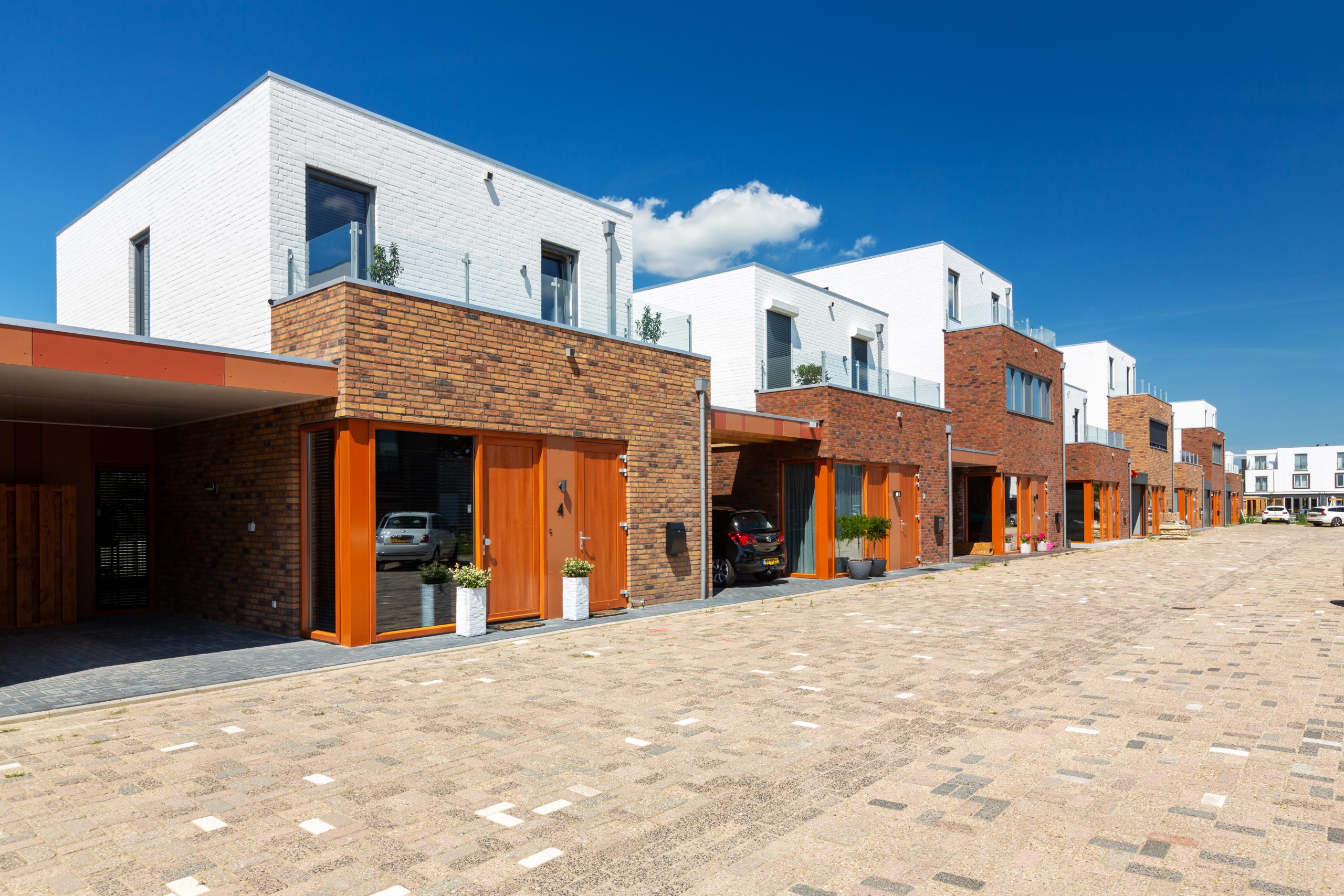 De woningen zijn voorzien van een uitkragend terras boven het water, welke met een grote pui verbonden is met de woonkamer. Zo zijn het met recht waterwoningen te noemen. Door aan enkele woningen een derde bouwlaag toe te voegen ontstaat een wisselend gevelbeeld in stucwerk en verschillende kleuren metselwerk.