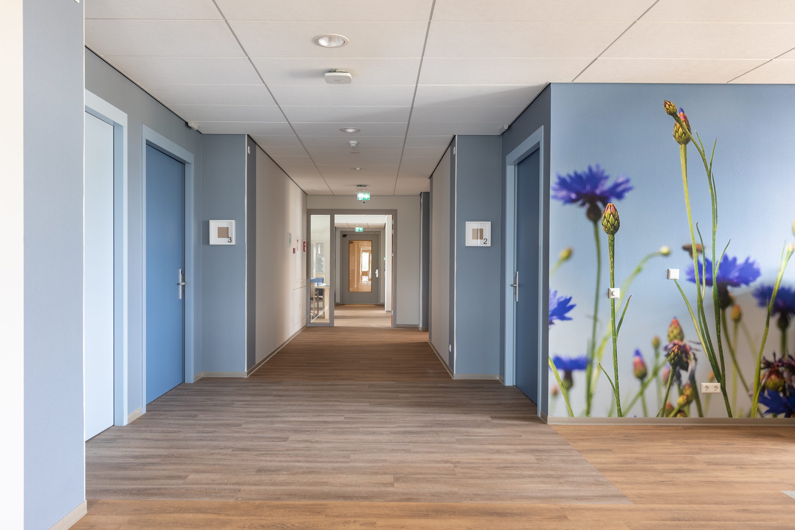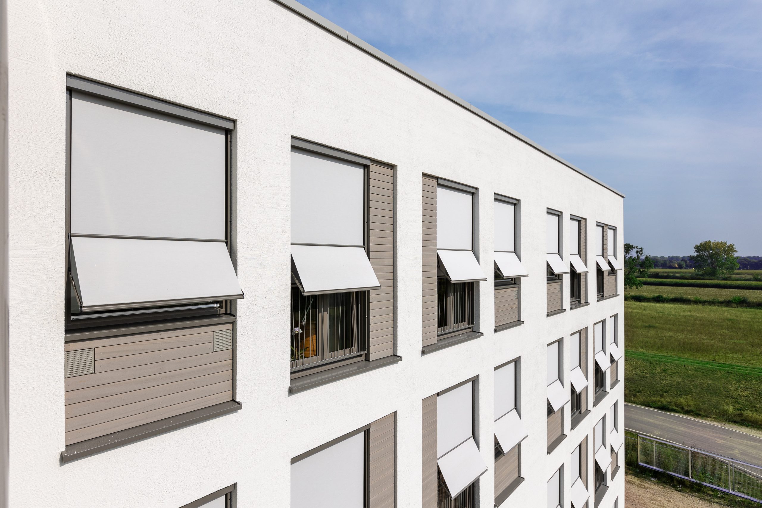 De buitengevels van het gebouw zijn wit omdat dit formaliteit uitstraalt en goed aansluit bij de bestaande gebouwen op het terrein. De binnenzijde van de H-vorm heeft een zachter uiterlijk; een formele witte jas met een warme voering. Dankzij het groen aan de gevels en de plantenbakken boven de luifel gaat het gebouw een relatie aan met het groene landschap. Het Maasheggenlandschap wordt ook doorgevoerd in de huiskamers dankzij natuurlijke kleurthema’s. Zo is het hele gebouw, buiten en binnen, ontworpen ten gunste van het welzijn van de gebruikers.