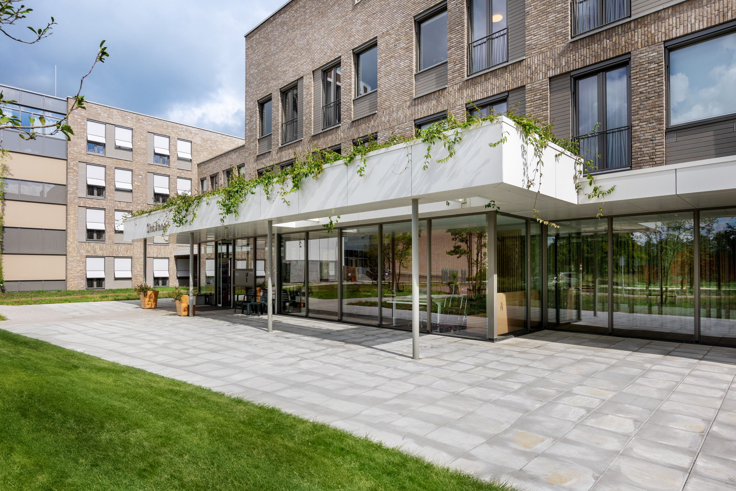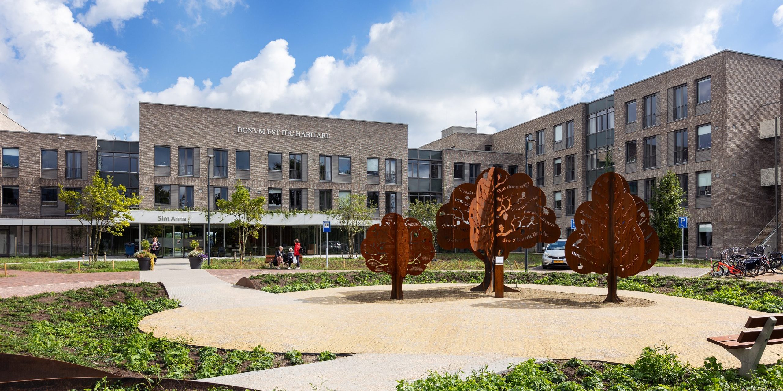 Aan de gevel van het nieuwe verpleeghuis is ‘bonum est hic habitare’ te lezen. De Latijnse tekst is een verwijzing naar de religieuze achtergrond van Sint Anna en betekent ‘het is hier goed wonen’. Het gehele ontwerp is er dan ook op geënt om de bewoners een zo prettig mogelijk thuis te bieden. Dat begint bij binnenkomst dankzij het warm welkom concept. Aan de entreezijde bevindt zich een transparante corridor die functioneel de woonvleugels verbindt. De corridor is samen met het ontmoetingsgebied een belangrijk en dynamisch gebied om elkaar te ontmoeten.
